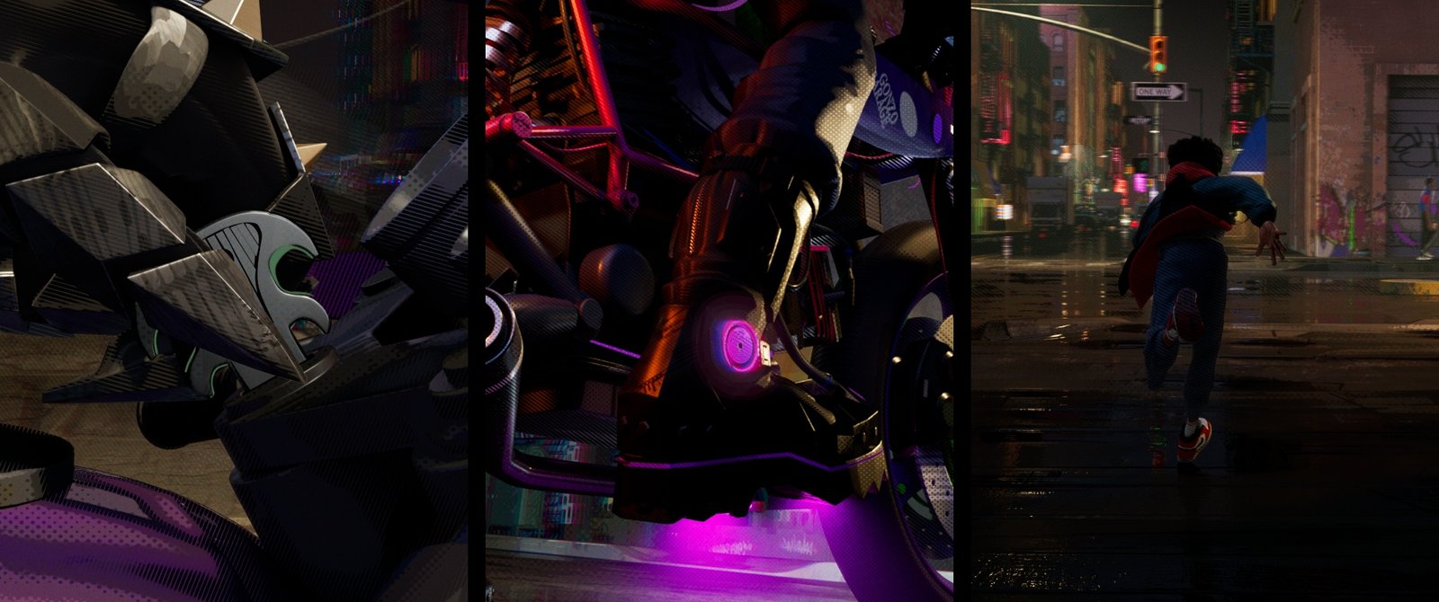 Filmin son görünümü de çizgi roman baskı tekniklerinden ilham aldı ve yarı tonlama ve çizgi taramasından özgürce yararlandı. Spider-Verse, geleneksel CGI değil, elle çizilmiş öğelerle karıştırılmış bir dizi yeni işleme stilidir.